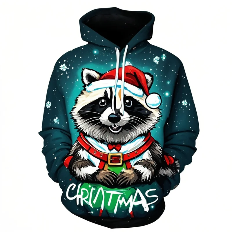 Cute Raccoon Graphic Sweatshirts Fashion Christmas Hoodies For Men Female